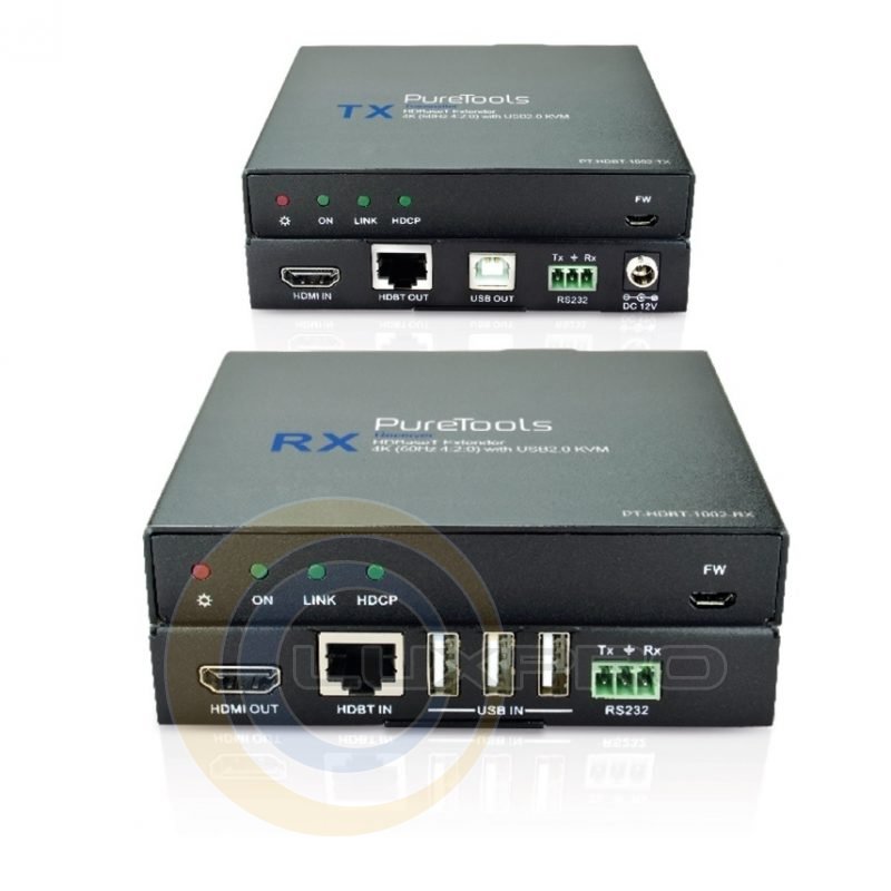 - Передача HDMI через HDBaseT на расстояние до 40 м (4K), 70 м (1080p);