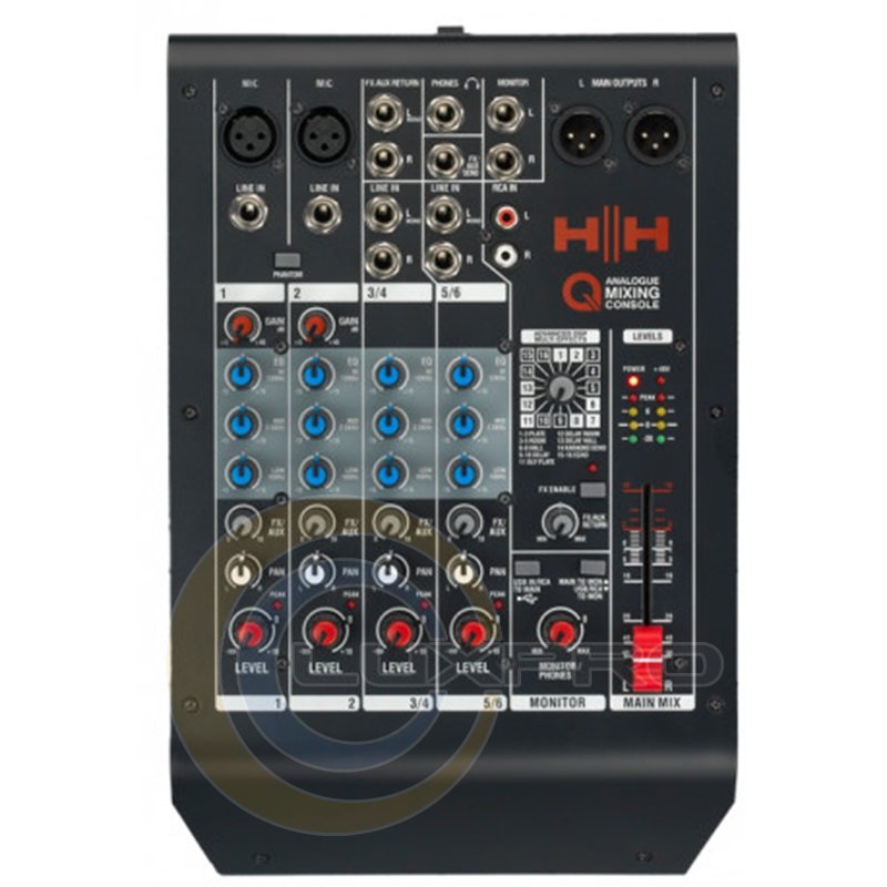 - Тип: аналоговый 6-канальный микшерный пульт;
