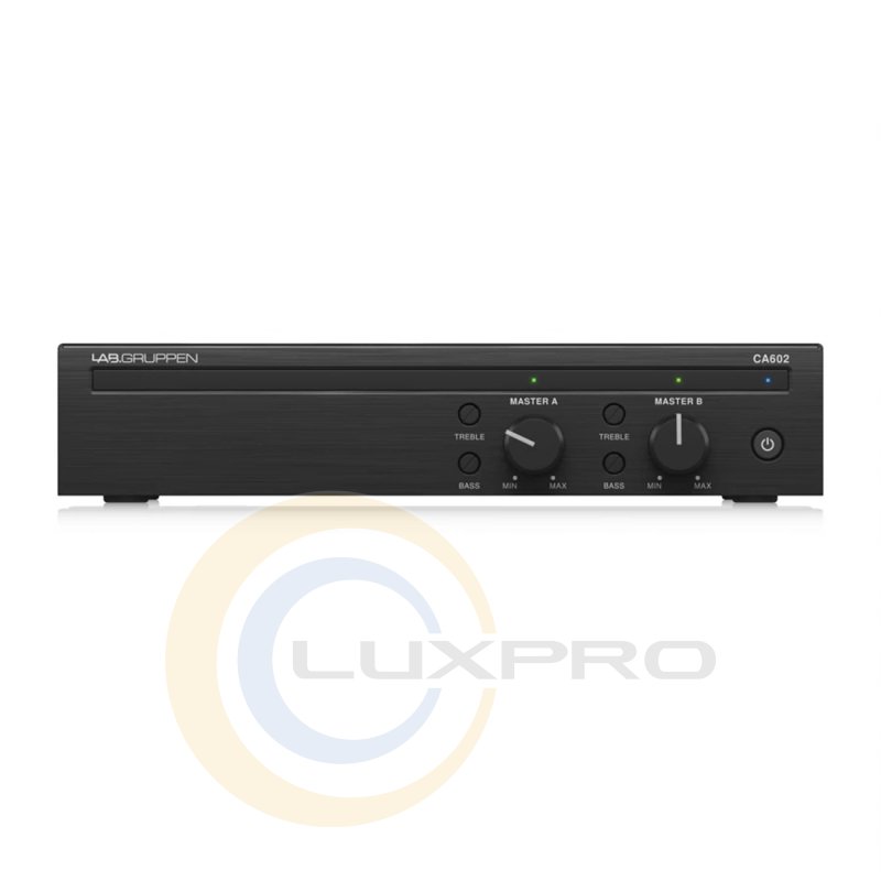 CA602 - трансляционный усилитель относиться к классу D и предлагает 60 Вт максимальной выходной мощности на каждый из двух каналов вне зависимости от типа подключения. Корректно работать устройство может при коммутации с низкоомной акустикой с сопротивлением 4 или 8 Ом, а также в составе трансляционных сетей с напряжением 70 или 100 Вольт. Озвучиваемый частотный диапазон простирается от 20 Гц до 20 кГц, также стоит отметить крайне низкие значения вносимых искажений и шума.