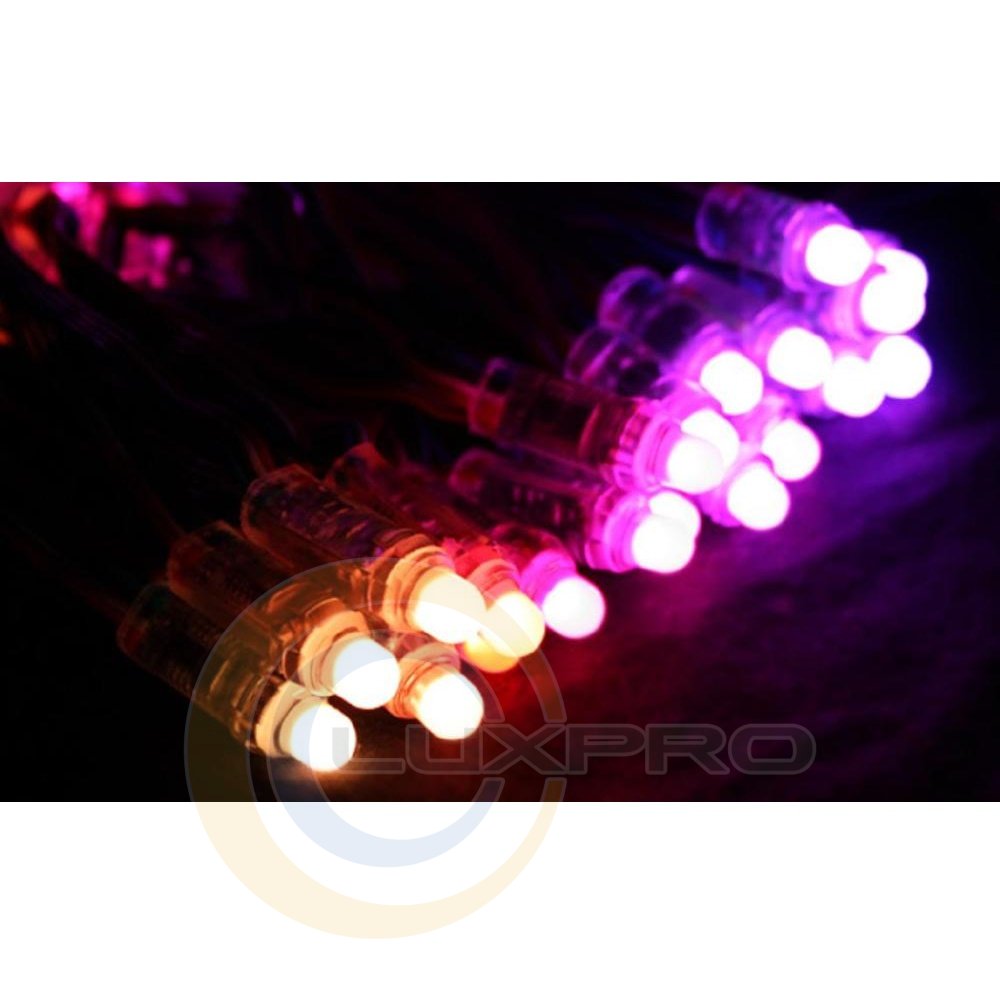 Каждый светодиодный RGB пиксель имеет встроенную микросхему – драйвер (IC WS2801), который позволяет получить 16 млн различных цветов (8 бит на цвет, 24 бит на пиксель). Встроенная микросхема дает возможность автоматической адресации пикселя в гирлянде.Пиксели этого класса применяются для создания анимированных вывесок, логотипов, выставочных стендов и других динамических светодиодных акцентов, например – звездное небо и тд.Каждый пиксель управляется отдельно, это дает возможность создать разнообразные видео-эффекты. Соответственно, чем больше пикселей в проекте и чем меньше между ними расстояние, тем более четкие и яркие эффекты можно получить.Автономная динамическая система состоит из пикселей, контроллера управления и блока питания.Минимальный шаг установки пикселей 16мм, максимальный 70мм (без удлинения). Пиксели поставляются в виде гирлянд по 50шт.Простая система состоит из:- необходимого количества пикселей;