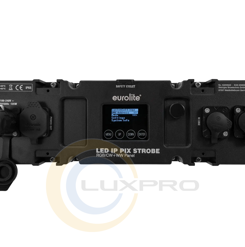 LED IP PIX Strobe предлагает изменяемую цветовую температуру от 3200K до 6600K, что позволяет тонко настраивать освещение и цветовую гамму. Фоновые цвета можно регулировать, а электронный диммер и плавное смешивание цветов обеспечивают точный контроль над интенсивностью света и переходами цветов. Скорость программ шоу также можно изменять. С 20 встроенными программами шоу, доступными как для белых, так и для цветных светодиодов на отдельных DMX-каналах, LED IP PIX Strobe является очень универсальным и простым в использовании. Управление осуществляется в режиме Stand-alone, звуковой активацией через микрофон, функцией Master/Slave и DMX с использованием до 32 каналов.