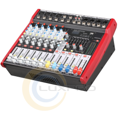 Силовой микшер нового поколения высокого класса надежности, высококачественный усилитель с двойным питанием и низким шумом. Аналоговый микшер со встроенный МП3 плеером и эффектором, новейшая низкошумная технология микрофонного предусилителя. Возможность мьютирования каждого канала. Возможность дополнительного подключения эффект процесора. Независимый мониторный выход и две суб группы, выход на наушники, 60 мм фадеры и полностью герметичные рото резисторы