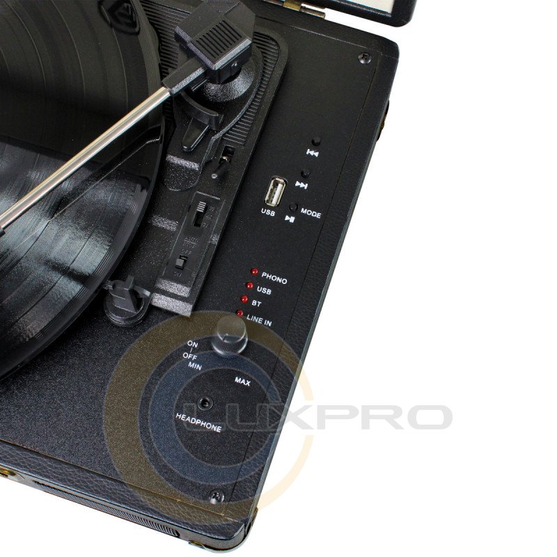 Функция Bluetooth позволяет транслировать музыку с мобильных устройств беспроводным способом, а функция автостопа упрощает использование, поскольку автоматически останавливает виниловую пластинку после завершения ее воспроизведения. Разъем USB Type-A предназначен для подключения флешки и воспроизведения музыки с нее. Переключение песен осуществляется кнопками на панели управления проигрывателя. К 3,5-миллиметровому разъему, расположенному под функциональным переключателем, можно подключить наушники и наслаждаться музыкой наедине.