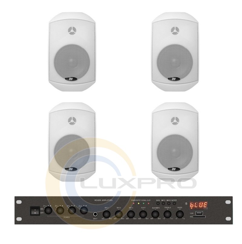 Акустическая система DV audio MS-5.2T IP White. Двухполосная акустическая система предназначена для передачи музыки и речевого оповещения в помещениях ресторанов, торговых центров, кафе, гостиницах, офисах, спортивных клубах. Серия MS - имеет более прозрачный и качественный звук в отличии от хорошо зарекомендовавшей себя серии PB. Требует настенного монтажа. Пластиковый корпус с металлической решеткой, кронштейн в комплекте. Несколько режимов работы. Имеет уровень защиты IP65, что позволяет использовать эти системы на улице - парковки, фасады зданий, летние площадки, веранды ресторанов, звук в парках (OUTDOOR).