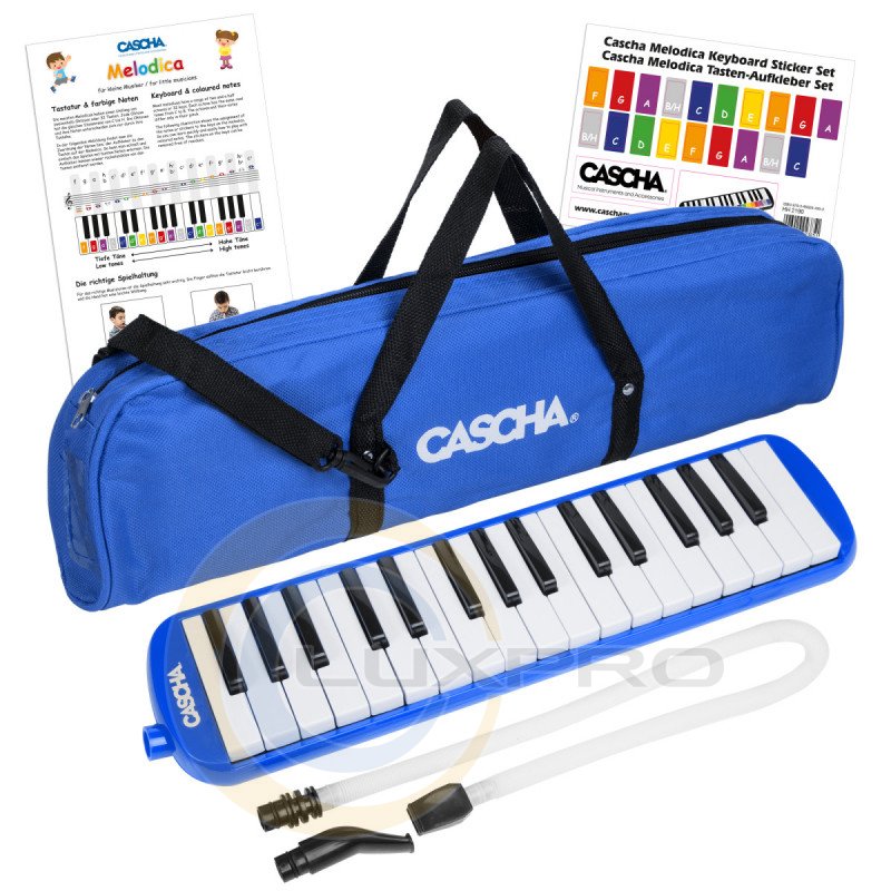 Она удобна как для игры одной рукой, так и двумя руками, когда инструмент размещен на столе с подключенным гибким шлангом. Корпус мелодики изготовлен из высококачественного гигиеничного пластика, а для удобного транспортирования она поставляется в комплекте с сумкой. Также в комплект входят цветные наклейки для клавиш и инструкция с пятью песнями. Наклеив наклейки на клавиши, каждая нота получает свой цвет, что позволяет музыкантам легко и быстро освоить игру.