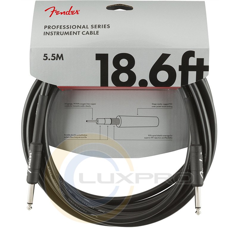 CABLES PROFESSIONAL 18.6' BLACK - кабель с длиной 5.5 метра имеет 2 прямых разъема Jack, черный цвет.