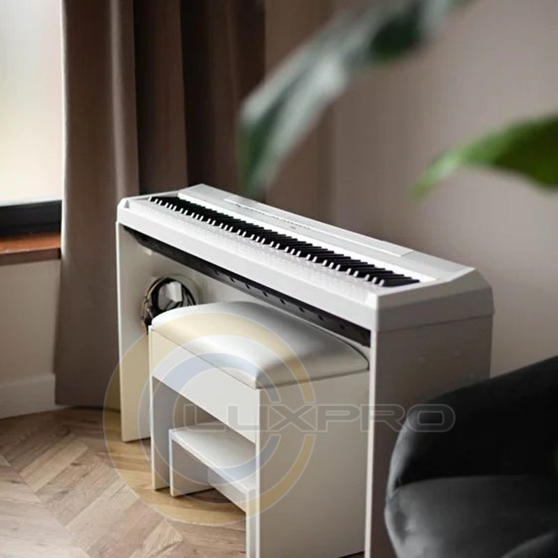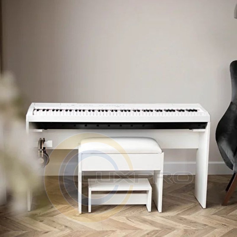 Стойка стационарная и крепится к пианино 4 винтами. Пианино в комплект не входит. Комплект: стойка, крепление для наушников, комплект крепления, ключ для сборки, инструкция по сборке.