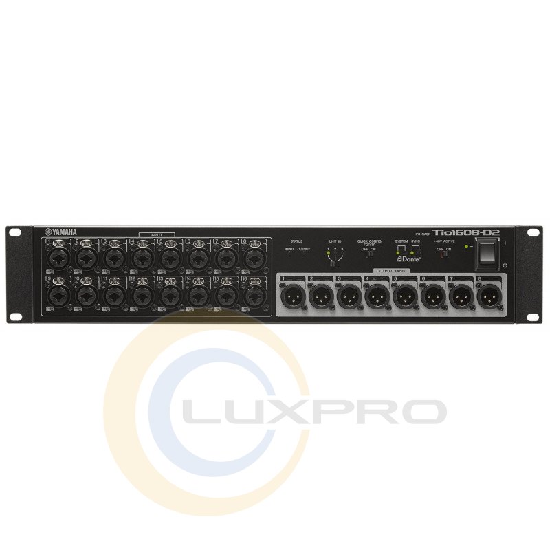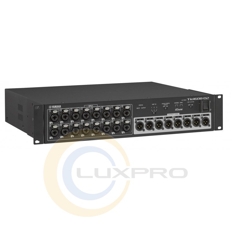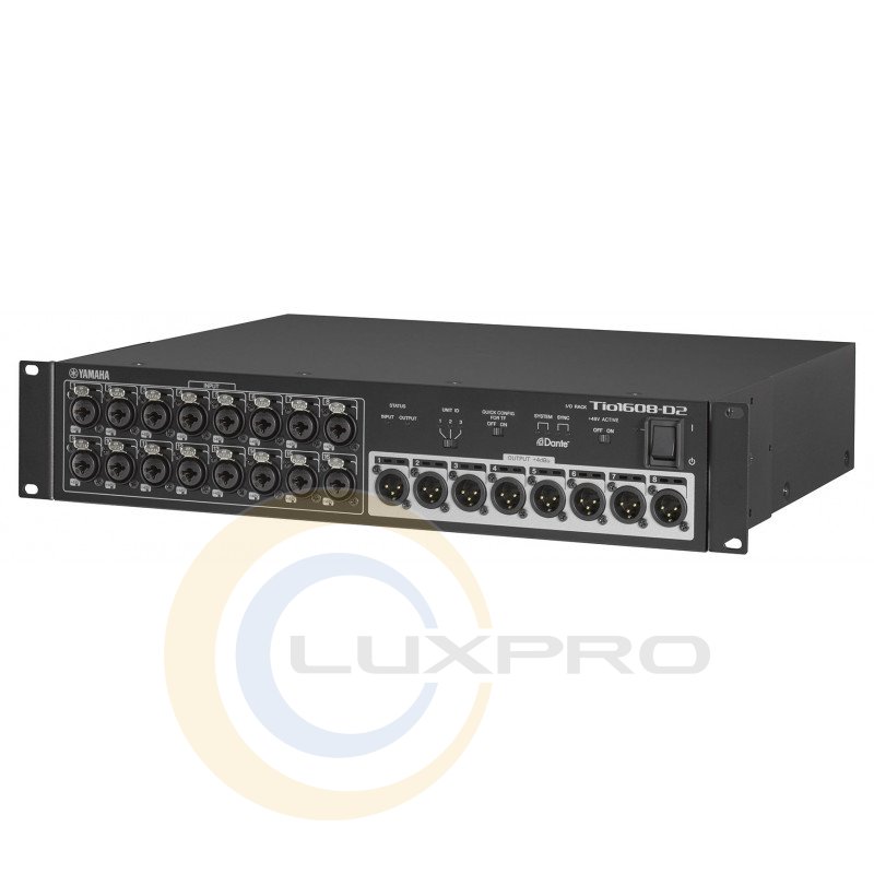 Tio1608-D2 - стейджбокс для использования с TF или DM3. Серия TF может использовать дополнительную карту расширения NY64-D для подключения до трех устройств Tio1608-D2, тогда как DM3 может подключаться к одному устройству. Соединение консоли и Tio1608-D2 с помощью легкого и прочного кабеля Ethernet CAT5e в последовательном подключении обеспечивает высококачественную передачу звука с малой задержкой без трудоемкой транспортировки и установки, необходимых при использовании аналоговых мультикоров. Для использования Tio1608-D2 c TF необходима опциональная карта расширения NY64-D.