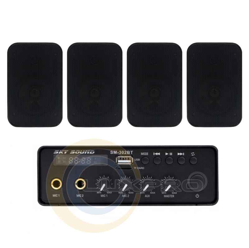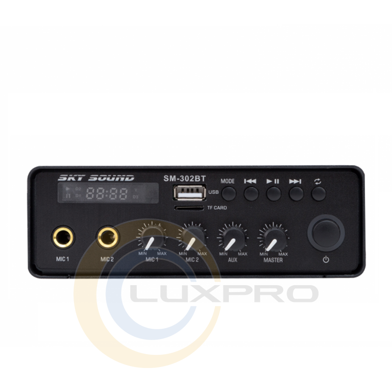 SKY SOUND SM-302BT (2*30W) - двухканальный усилитель мощности для подключения к низкоомным акустическим системам трансляции фонового озвучивания и речевого оповещения.