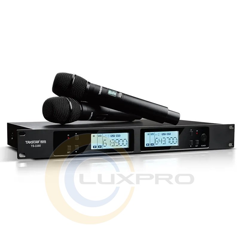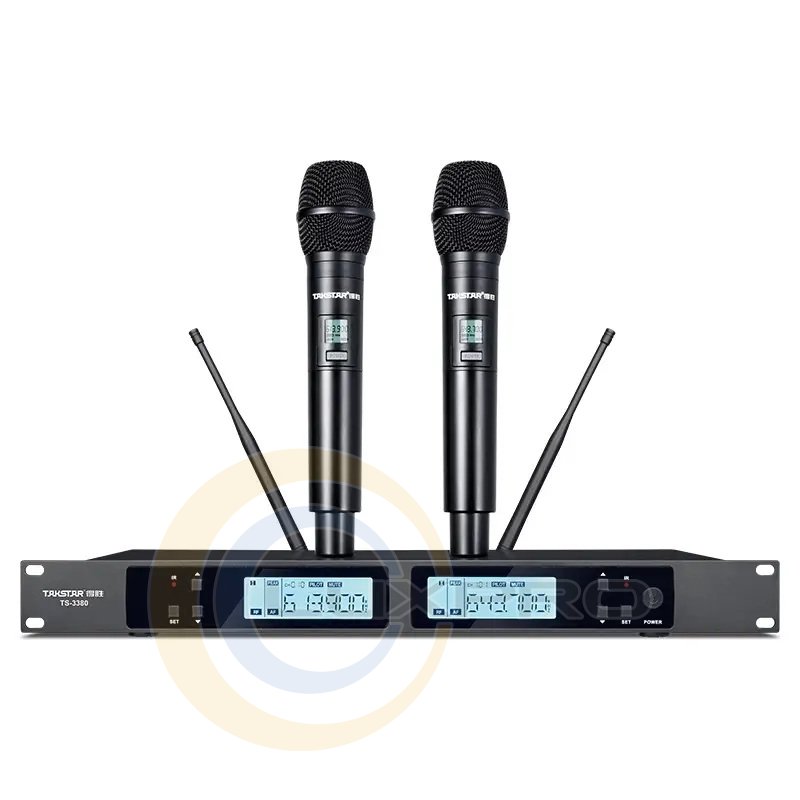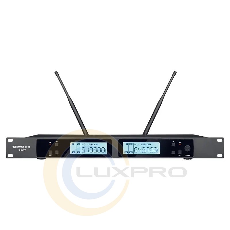 Радиосистема TS-3380. Специальная функция идентификации кода канала эффективно предотвращает перекрестные помехи. Интуитивно понятное отображение рабочего состояния на ЖК-дисплее. Функция сканирования одной кнопкой на приемнике автоматически находит лучший доступный канал. ИК-синхронизация для простой синхронизации передатчика и приемника одним простым нажатием. Автономные балансные выходы XLR, а также смешанный небалансный выход 6,3 мм.