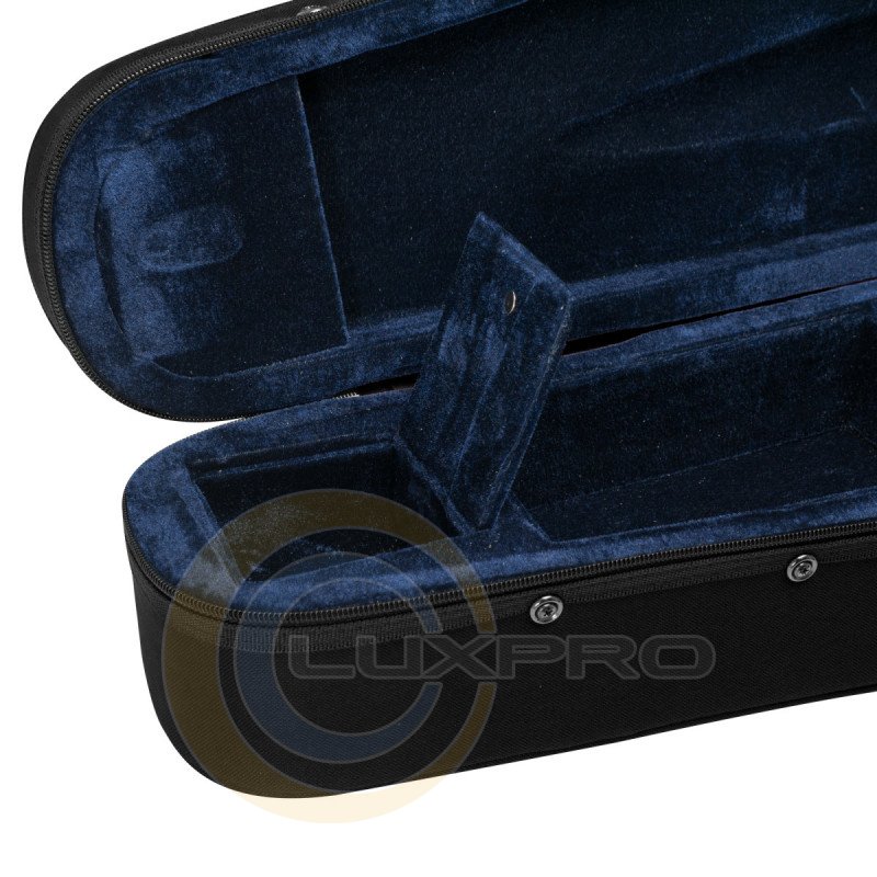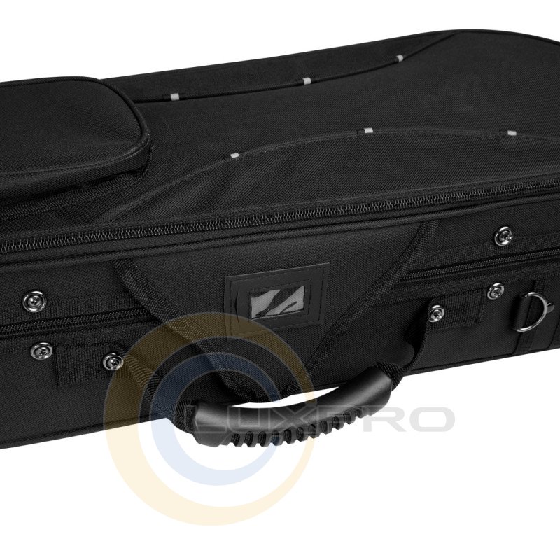 В комплект входит высококачественный смычок с колодкой из черного дерева и перламутровой инкрустацией, запасные стальные струны и мостик для плеча. Специальная смола, поставляемая в пластиковом контейнере, легко и равномерно наносится на смычок. Защитный футляр с мягкой подкладкой и усиленной ручкой, а также лямками для плеч обеспечивает надежное хранение и транспортировку инструмента. В нем также предусмотрены отделения для аксессуаров, а во внешнем кармане можно удобно хранить ноты формата A4.