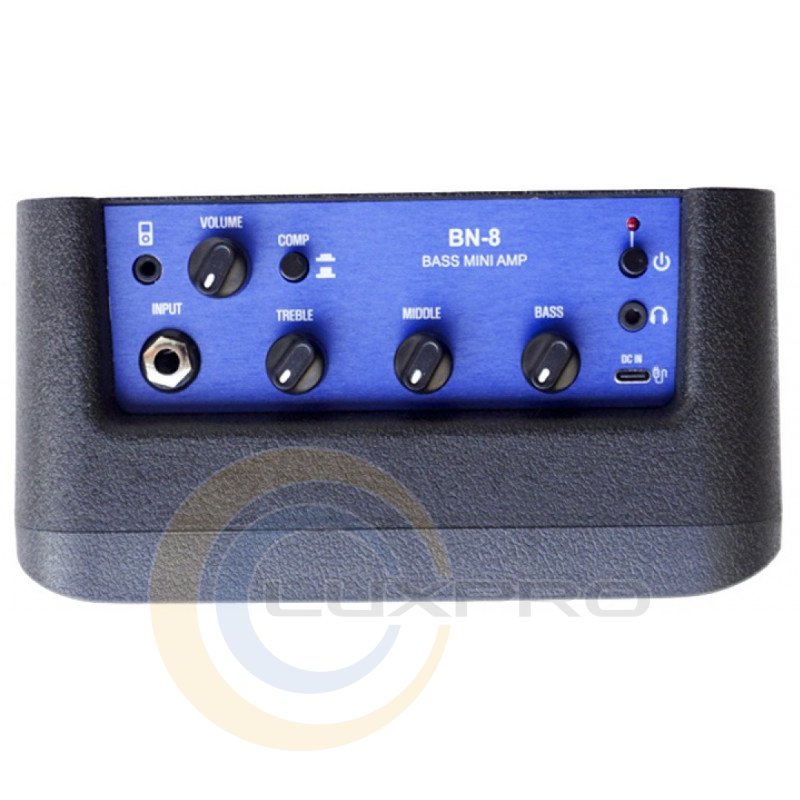 BN-8 - гитарный комбоусилитель оснащен одним входом для бас-гитары на разъеме TRS 1/4". Также имеется AUX-вход на разъеме TRS 1/8", что позволяет подключить смартфон или проигрыватель и играть под любимый трек. Для удобства использования есть выход для наушников, который позволяет играть в тишине, не мешая другим. Специально разработанные 2 динамика размером 3 дюйма обеспечивают чистый и насыщенный звук.