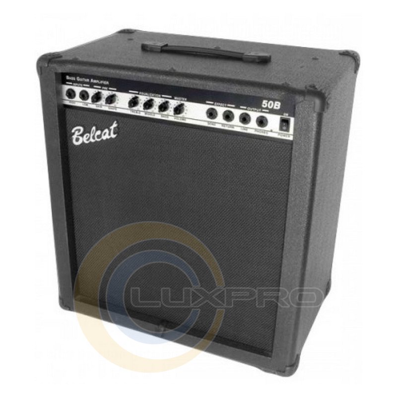 50B - гитарный комбоусилитель. Элементы управления включают предусилитель с регуляторами Gain и Shape, 3-полосный эквалайзер, а также главный регулятор громкости (Master Volume). Belcat 50B имеет расширенный набор подключений: два входа High и Low на разъемах TRS 1/4", а также FX Send и Return для внешних эффектов. Из выходов присутствуют линейный выход и выход для наушников.