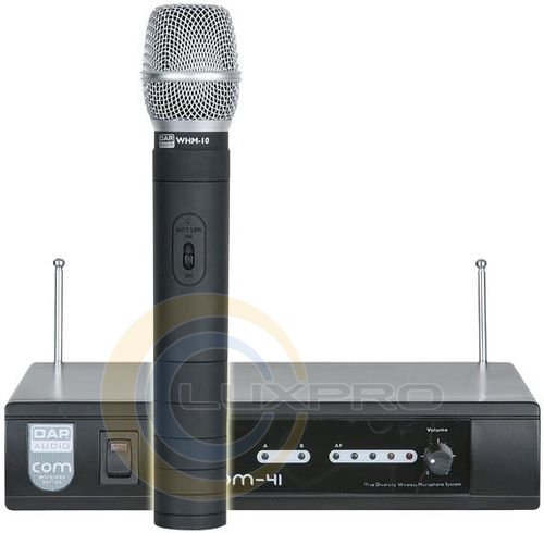 DAP Audio COM-41 UHF - недорогая радиосистема с ручным динамическим микрофоном. Работает на фиксированной радиочастоте, не имеет расширенного меню и настроек. Надёжная и очень простая в использовании. Микрофон оснащён индикатором заряда батарей. Оптимальное предложение для школ, сельских ДК, бюджетных дискотек, для проведения развлекательных и рекламных мероприятий и др.