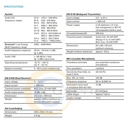 Все выше и вышеEvolution Wireless Digital утверждает новый стандарт функциональности и надежности. Входной динамический диапазон беспроводных передатчиков Evolution Wireless Digital составляет 134 дБ, что значительно больше, чем у любой другой беспроводной микрофонной системы из представленных на рынке сегодня. Кроме этого EW-D мгновенно и в автоматическом режиме находит оптимальные для эффективной работы частоты и обеспечивает 56 Мгц пропускной способности с возможностью подключения до 90 каналов на полосу.Эквидистантная сетка частотНовая Evolution Wireless Digital, как и флагманские беспроволочные микрофонные системы Sennheiser Digital 6000 и Digital 9000, работает в эквидистантной сетке частот. EW-D равноудаленно, с интервалом 600 кГц, распределяет частоты между беспроводными передатчиками, устраняя даже вероятность интермодуляции. Таким образом, система не только предоставляет больше места в доступном диапазоне, но и позволяет подключать столько микрофонов, сколько нужно, без пересчета частот для устранения интермодуляции. Это очень помогает не только новичкам, но и опытным профессионалам, экономя их рабочее время.Персональный звукорежиссер, который всегда рядомИспользуя Sennheiser Smart Assist все параметры Evolution Wireless Digital и все управление в буквальном смысле вмещаются на ладони. Дополнение устанавливается на любое совместимое мобильное устройство под управлением iOS или Android, к системе приложение подключается по bluetooth-каналу (с поддержкой Bluetooth Low Energy) и выдает всю необходимую информацию для удаленной настройки и мониторинга EW-D. Кроме меню управления в Smart Assist предусмотрена также детальная инструкция по эксплуатации EW-D с большой подборкой специальных видеопримеров. Экономьте время, экономьте энергию и работайте уверенно.Основные преимущества микрофонных систем серии Evolution Wireless Digital: