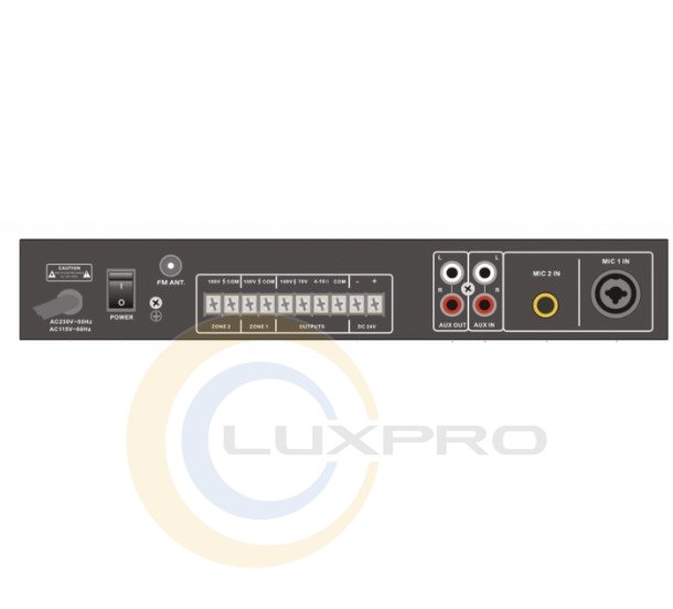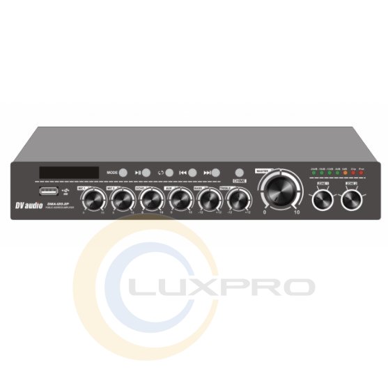 DV audio DMA-120.2P поддерживает два микрофонных входа, линейный вход и выход, что позволяет использовать его в различных условиях и с различными аудиоисточниками. Усилитель совместим с USB-флешками объемом до 16 ГБ, что дает возможность хранить большое количество музыкальных треков.Функция приоритета позволяет делать важные объявления без помех для других аудио сигналов. Пасивное охлаждение, а также встроенные защиты от перегрузки и короткого замыкания гарантируют долговечность и стабильную работу усилителя.Особенности (функционал):