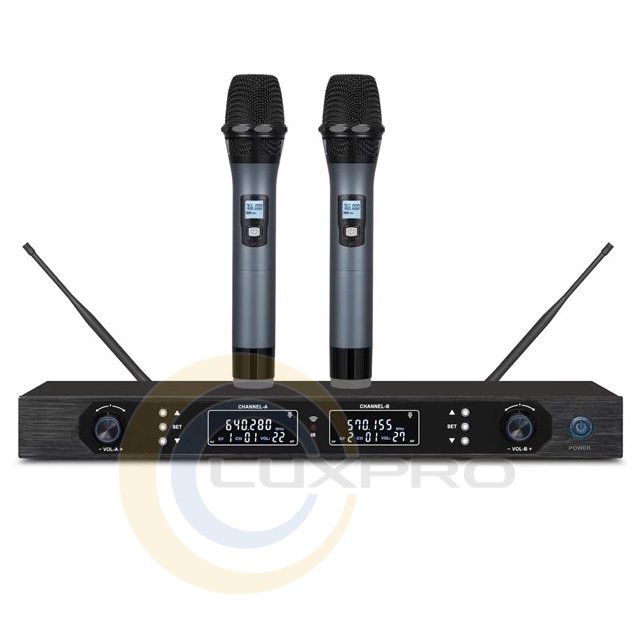 - Беспроводная двухканальная микрофонная система с ручными микрофонами;