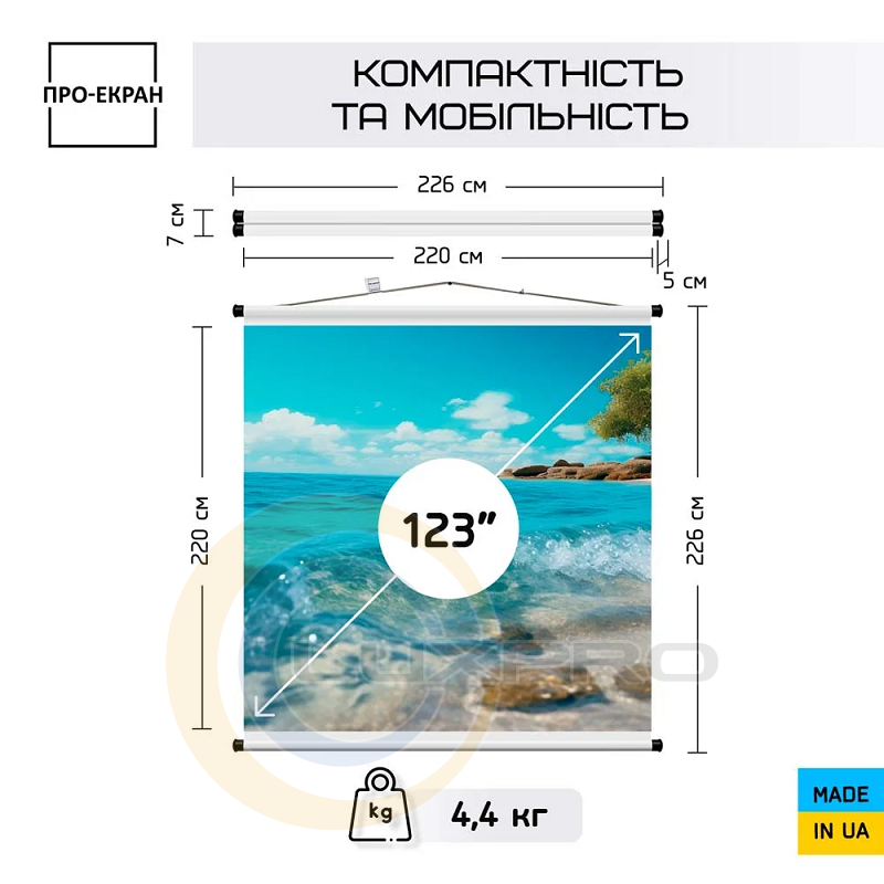 Экран для проектора 220 на 220 см (1:1), 123 дюймов