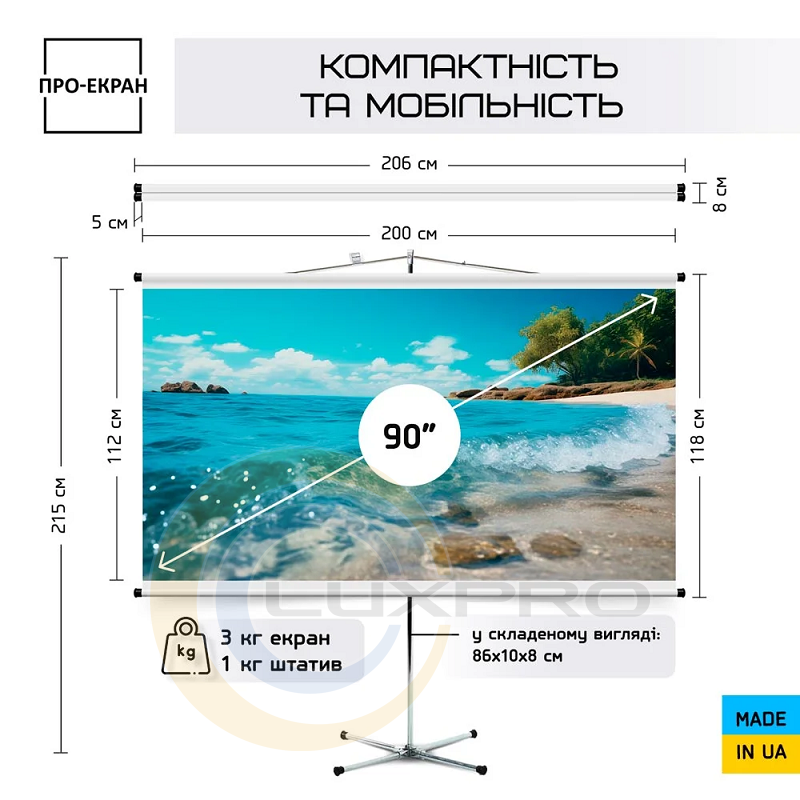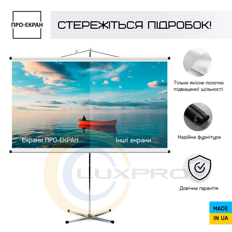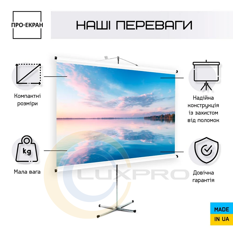 Экран для проектора обеспечивает высокую четкость, контрастность и равномерное отображение изображения при просмотре фильмов, презентаций или учебных материалов. Благодаря специальному полотну картинка остается насыщенной даже при наружном освещении. На LuxPRO доступны настенные, моторизованные, переносные, рамочные и экраны на трехподах в форматах 4:3, 16:9 и 16:10. В ассортименте представлены модели для дома, офиса, конференц-залов и обучающих аудиторий. Качественные материалы, широкий угол обзора и удобные варианты монтажа делают экраны универсальным решением для любого проектора. Выбирайте оптимальный размер и тип экрана и заказывайте с доставкой по Украине в LuxPRO.ua.