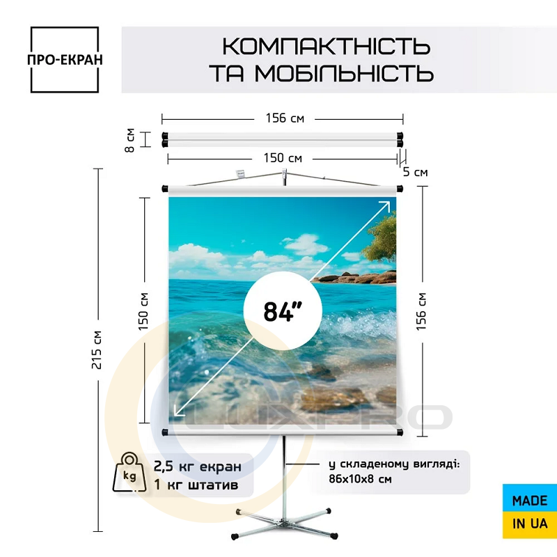 - вес: 2,5 кг экран + 1 кг штатив;