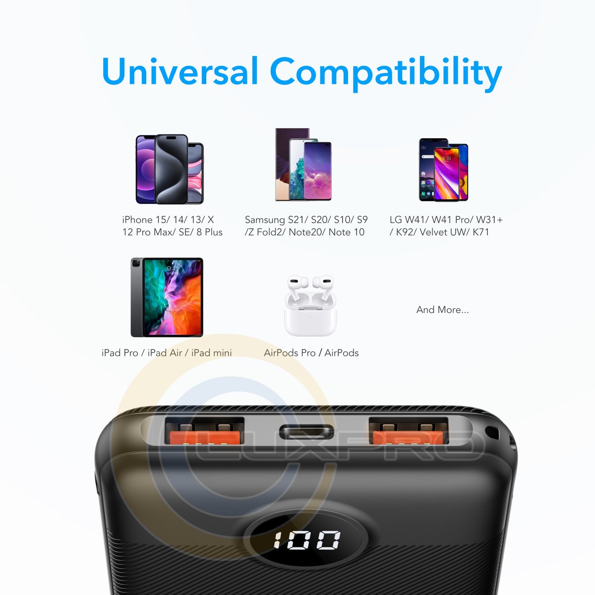 - Дополнительно: USB 1 Output: (QC3.0)5V-3A/9V-2.0A/12V-1.5A;USB 2 Output:(QC3.0)5V-3A/9V-2.0A/12V-1.5A; Type-C 1 Output:(PD+QC3.0) 5V-3.0A/9V-2.2A/12V-1.66A