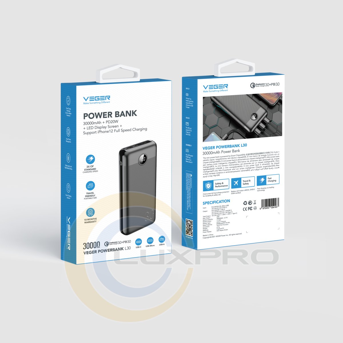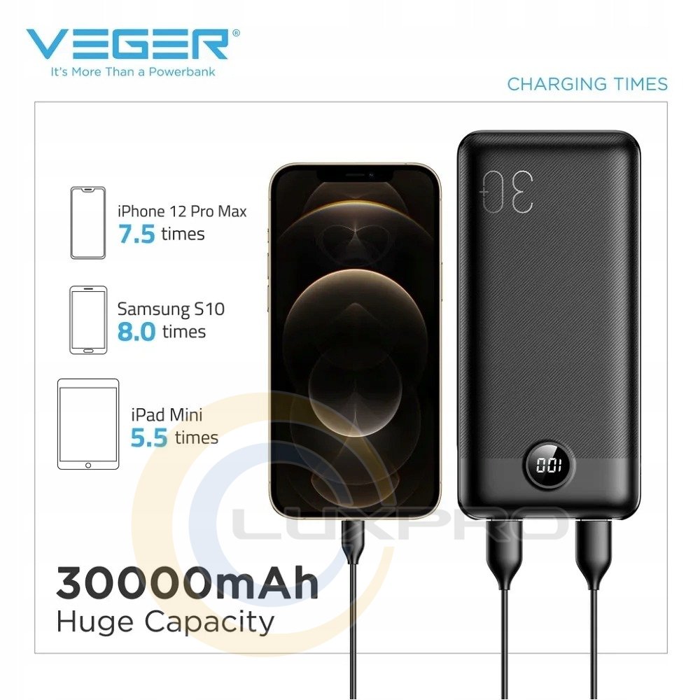 Внешний аккумулятор Power Bank VEGER 30000MAH (W3008PD) подобрать от лучшего бренда по актуальной цене в каталоге светового оборудования