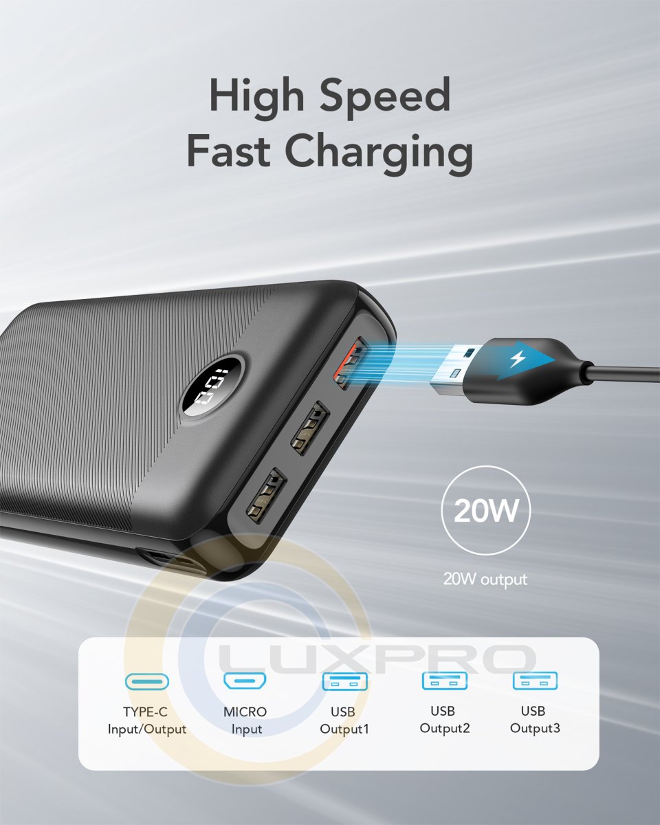 - Дополнительно: USB 1 Output: (QC3.0)5V-3A/9V-2.0A/12V-1.5A;USB 2 Output:(QC3.0)5V-3A/9V-2.0A/12V-1.5A; Type-C 1 Output:(PD+QC3.0) 5V-3.0A/9V-2.2A/12V-1.66A