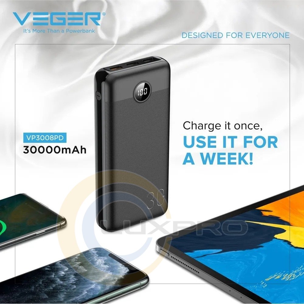 Внешний аккумулятор Power Bank VEGER 30000MAH (W3008PD)