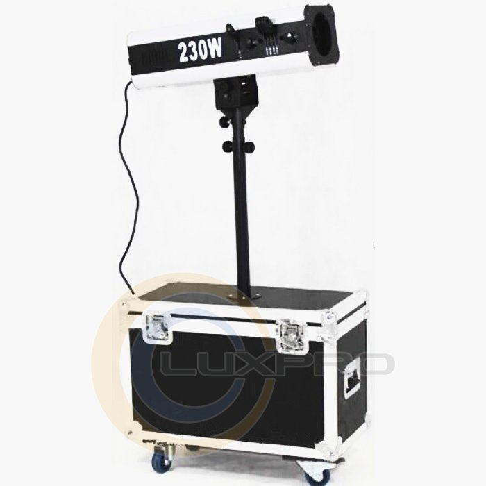 FS330 - это следящий прожектор, оборудован лампой 15R 330W от Osram. Эта модель предназначена для проекции лучей на расстоянии около 50 м, что неплохо подходит для средних и больших по размерам площадок. Ручной фокус, ирис, строб, зум.