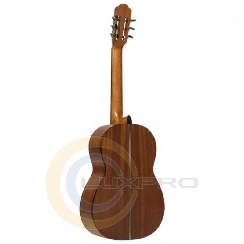 Цельная верхняя дека из кедра придаёт звуку тепло, мягкость и объем, а сапеле на задней деке и обечайках добавляет глубину и выразительность. Гриф из махагона, палисандровая накладка, костяные порожки, хромированная механика в форме лиры, глянцевое покрытие, инкрустированная розетка и декоративная окантовка корпуса – каждая деталь продумана до дрібниць.