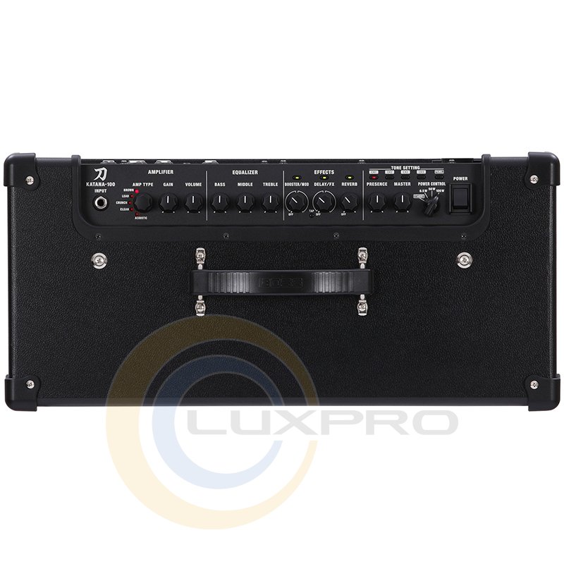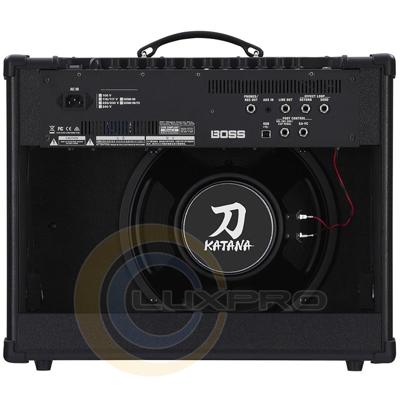 Особенности данной модели - мощность 100 Вт и заказной 12-дюймовый динамик Katana-100, котоорые вместе обеспечивают прекрасные тембровые харкетристики. Кроме того, данная модель обеспечивает доступ к множествам фирменных эффектов, которые можно настраивать с помощью BOSS Tone Studio. Поддерживается возможность конфигурации до 15 эффектов одновременно.
