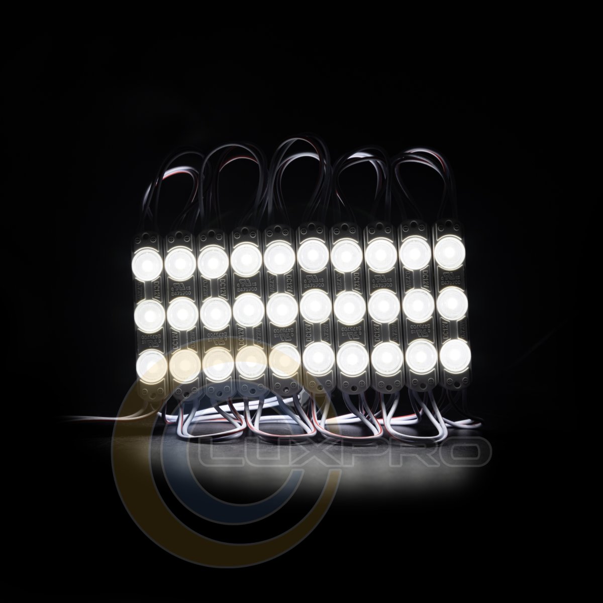 Преимущества светодиодных модулей PROLUM T1, SMD2835, 3LED, 12V, З линзою - (Белый 5500-6000К) :