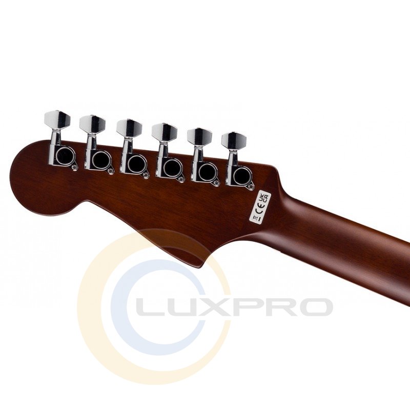 Сатиново-глянцевая отделка придаёт гитаре элегантный вид, а фирменная наклонная 6-рядная форма головы грифа улучшает натяжение струн и делает инструмент легко узнаваемым.