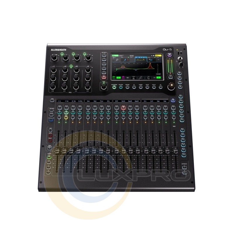 Цифровой микшерный пульт Qu-5 Микшерный пульт имеет 17 моторизованных фейдеров, новые хроматические индикаторы каналов и цветной дисплей, отображающий название, тип канала или номер входа. В новой версии обновлены все аппаратные элементы, что позволяет достичь еще лучшего качества микширования и точности контроля.96 кГц звук и DEEP ProcessingОбновленные микрофонные преампы вместе с высококачественными AD/DA преобразователями обеспечивают 96 кГц аудио, обрабатываемое через XCVI ядро. Технология DEEP Processing позволяет использовать фирменные плагины обработки из системы dLive без задержки — непосредственно в канале микшера.