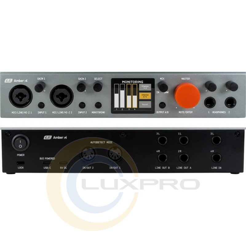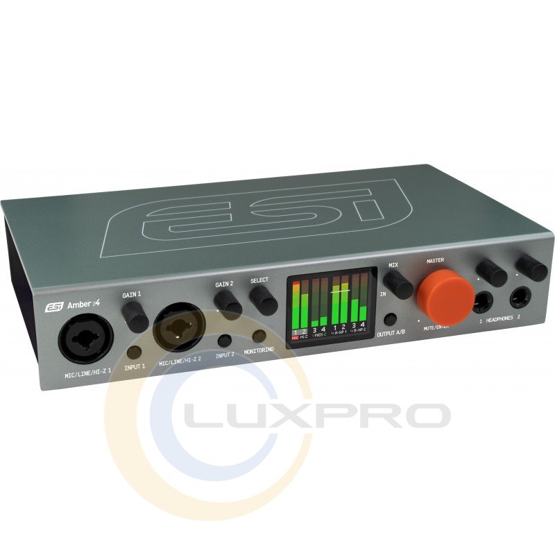 ESI Amber i4 имеет LCD-дисплей для контроля уровней сигнала и рабочего состояния интерфейса, а также MIDI-порты для полноценного взаимодействия с внешними устройствами. Интерфейс поддерживает loopback-функцию для стримеров и подкастеров, позволяя объединить микрофонный и системный звук в один поток без сложной маршрутизации.Драйверы и платформы