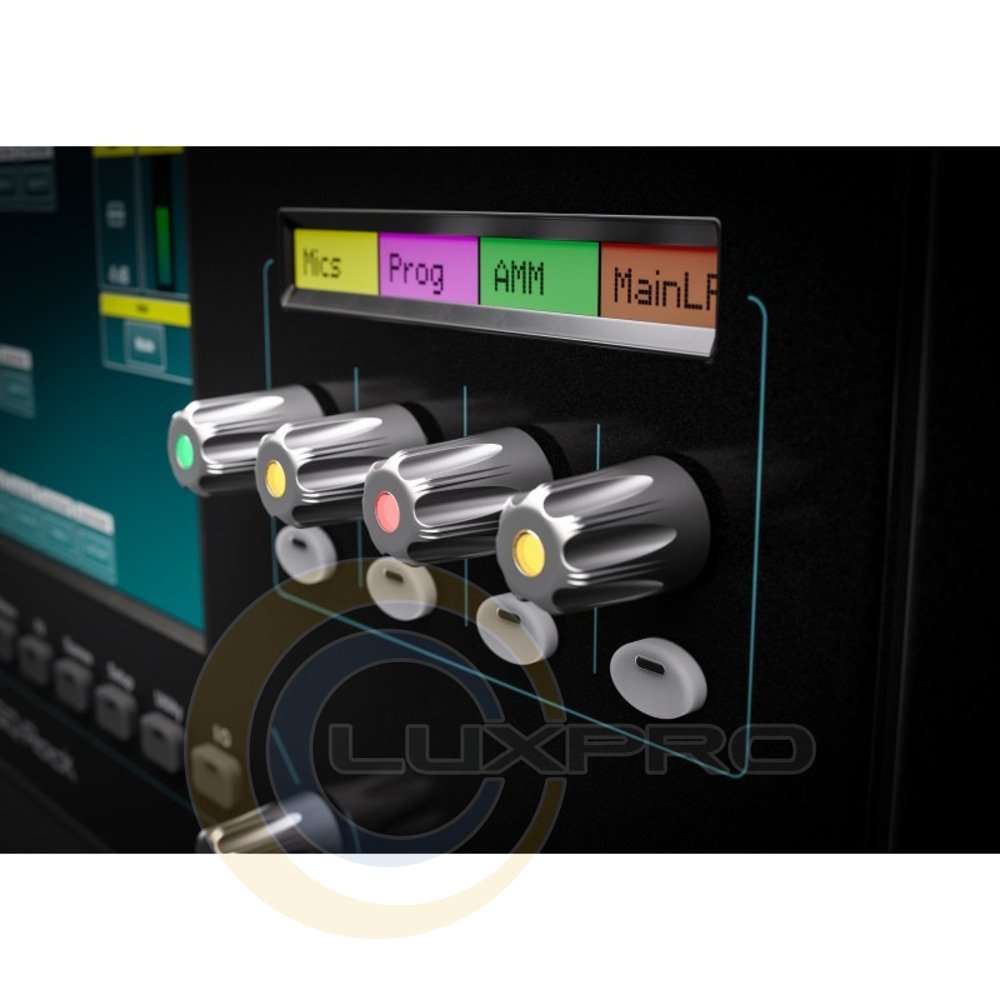 Устройство имеет 38 входов в микс (32 моно + 3 стерео), 12 микс-басов, 4 матрицы и главный стереовыход. 33 моторизованных фейдера работают с 4 слоями каналов, обеспечивая быстрый доступ к любому источнику сигнала. Сенсорный дисплей и цветовые индикаторы уровня значительно упрощают работу в реальном времени.Звук студийного уровня