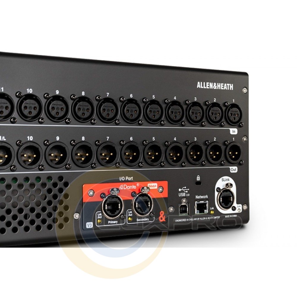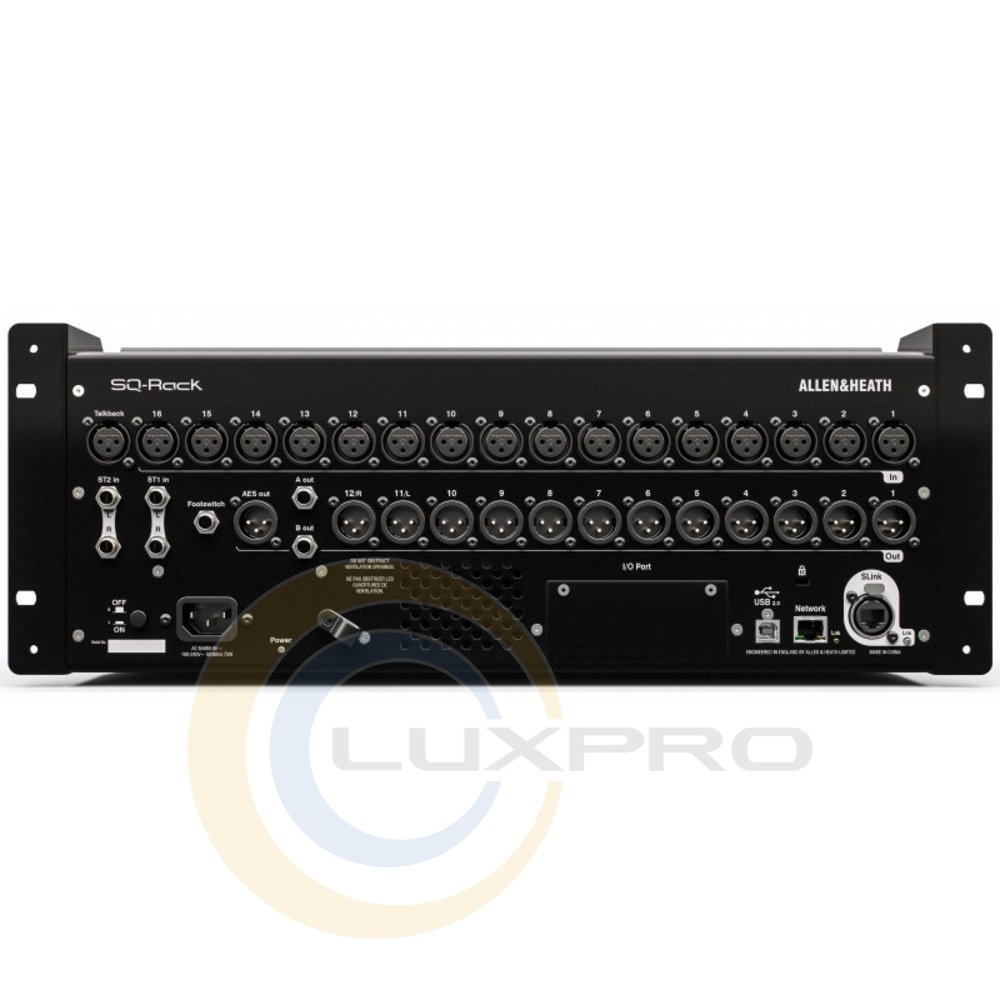 Микшерный пульт SQ-RACK.Устройство оснащено Dante-интерфейсом 16×16 с поддержкой 48 и 96 кГц, что позволяет напрямую передавать аудио в цифровые сети через надежный EtherCon-порт. Это решение идеально подходит для инсталляций, трансляций, театров и крупных сценических проектов.