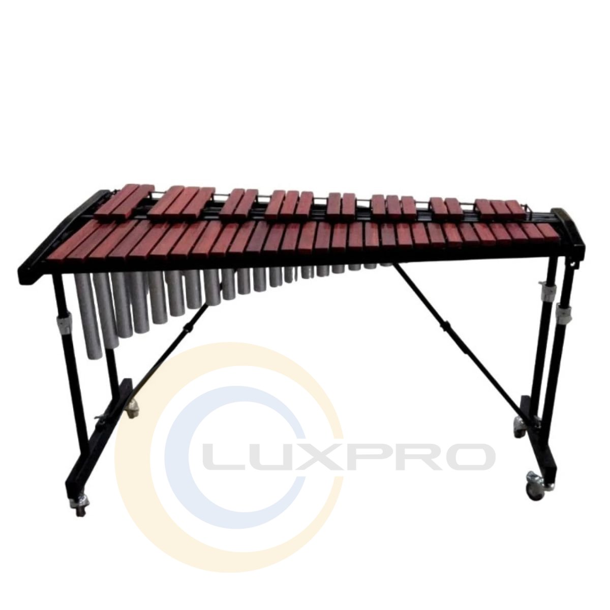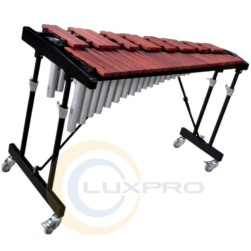 Ксилофон Orchestra R49 (C4-C8, 4 октавы). Алюминиевые резонаторы усиливают звук, придавая ему объём и яркость. Высота стойки регулируется в пределах от 75 до 90 см, что позволяет адаптировать инструмент под удобный уровень для каждого музыканта. Колёса обеспечивают лёгкое перемещение инструмента.