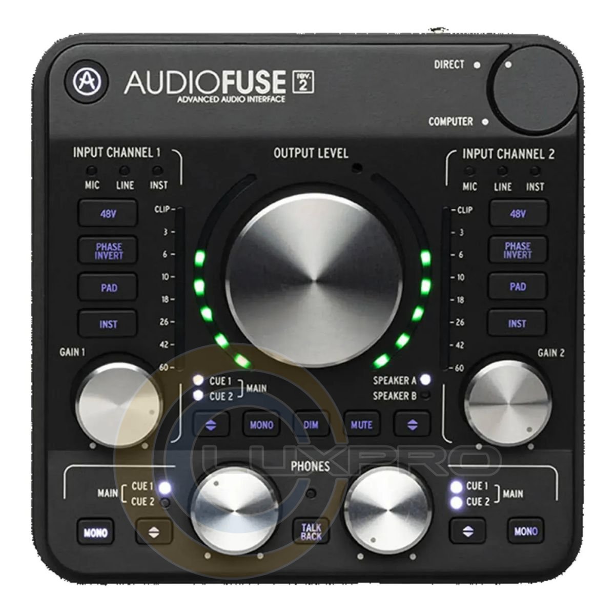 Аудиоинтерфейс AudioFuse Rev2. Оборудованный двумя микрофонными предусилителями DiscretePRO®, разработанными с нуля на основе дискретных компонентов, интерфейс обеспечивает непревзойденную чистоту сигнала без искажений, с широчежной частотной характеристикой более 250 кГц.