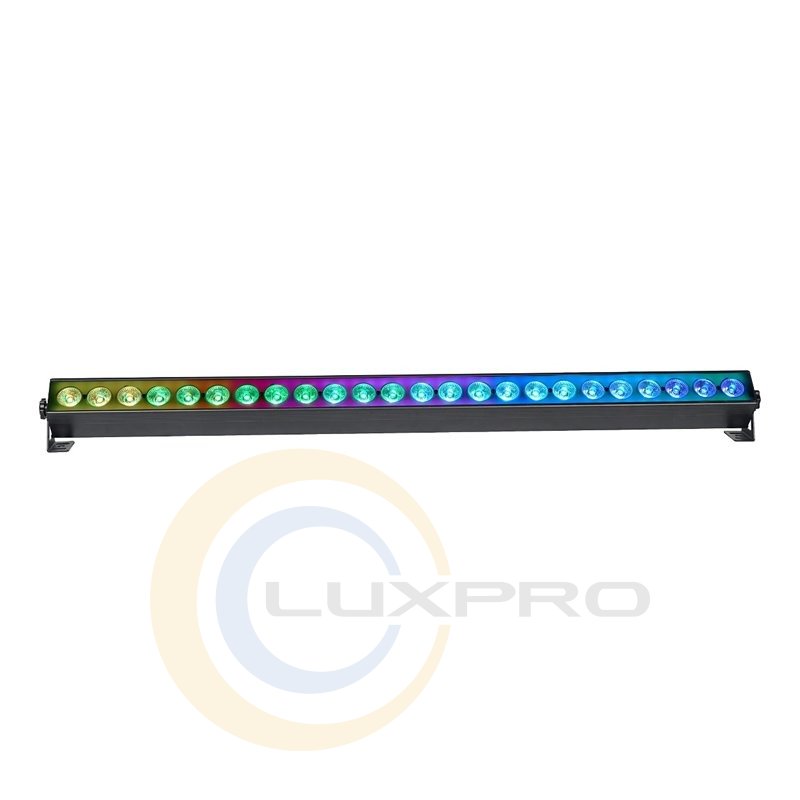 Світлодіодний LED прожектор STROBE LINE. Оснащен 24 мощными RGB-диодами по 3 Вт каждый, обеспечивает яркое и насыщенное освещение с углом раскрытия 25°. Поддерживает гибкое управление через DMX-протокол с возможностью выбора количества каналов от 2 до 24.