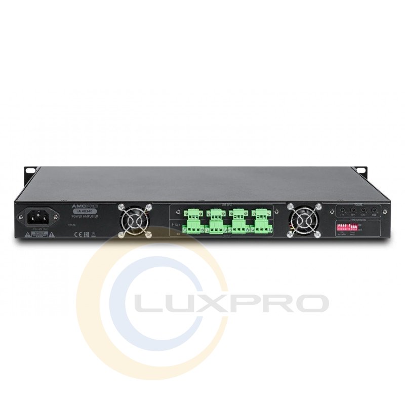 Трансляционный усилитель iA 4X240 Installation Amplifier. iA 4X240 стал самым мощным усилителем серии: каждый из четырех каналов выдает по 240Вт на линию 100В или на нагрузку 8Ω. Это делает его идеальным выбором для систем фоновой озвучки и трансляций в торговых центрах, административных домах, гостиницах, учебных заведениях и любых пространствах с большой площадью покрытия.