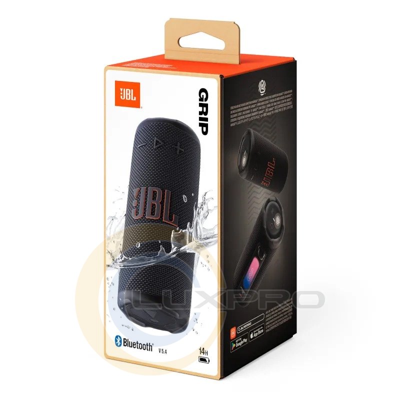JBL Grip создана, чтобы выдержать любые приключения. Она имеет самую высокую в области защиту IP68, поэтому не боится воды и пыли. Усиленная конструкция выдерживает падение даже на бетон, потому неприятных сюрпризов на вечеринке не будет.