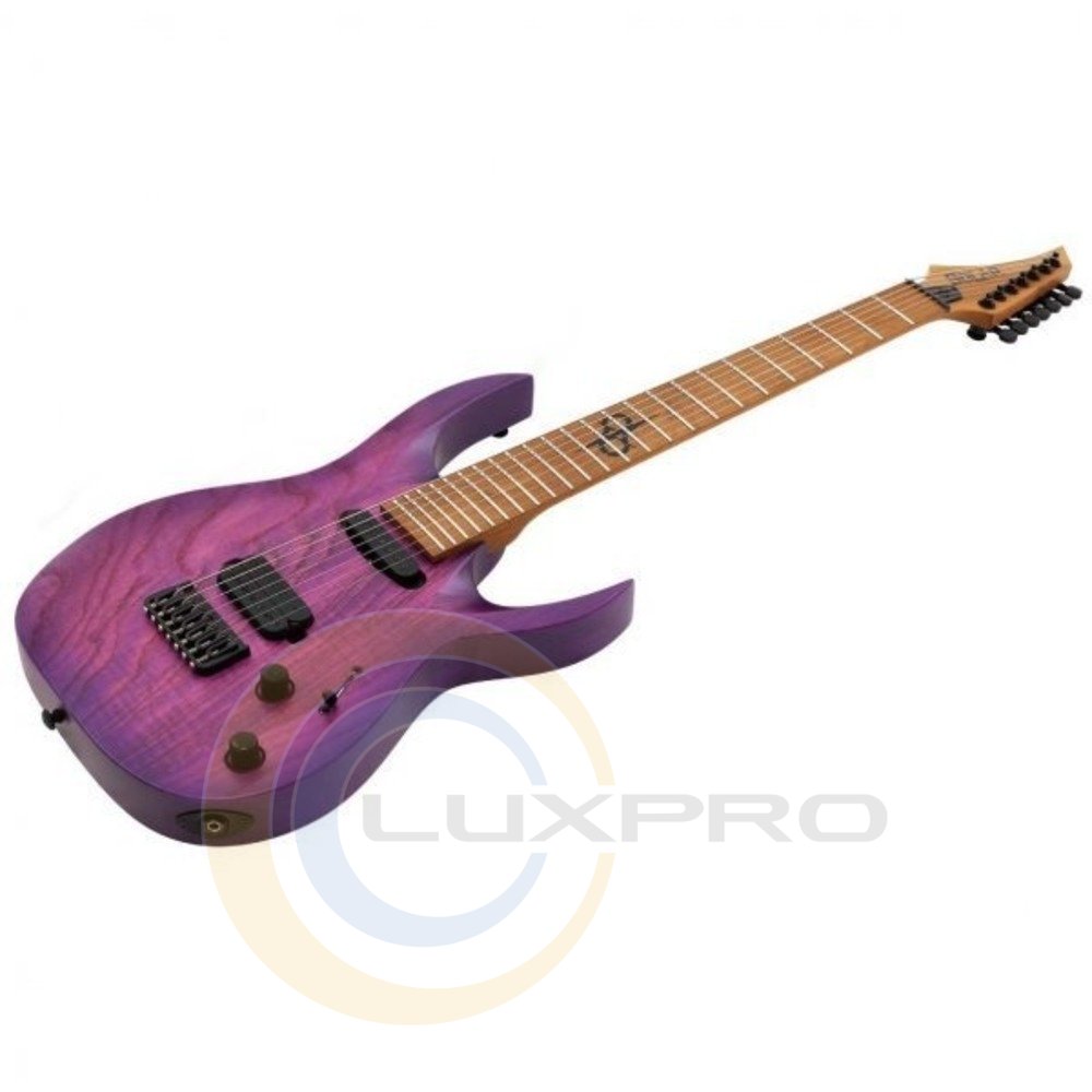Локовые колки Solar 18:1 обеспечивают надёжное удержание строя, а верхний порожек PPS добавляет чёткости звучанию. Эффектное покрытие Trans Purple Burst Matte подчёркивает природную текстуру дерева, придавая гитаре современный и агрессивный вид.