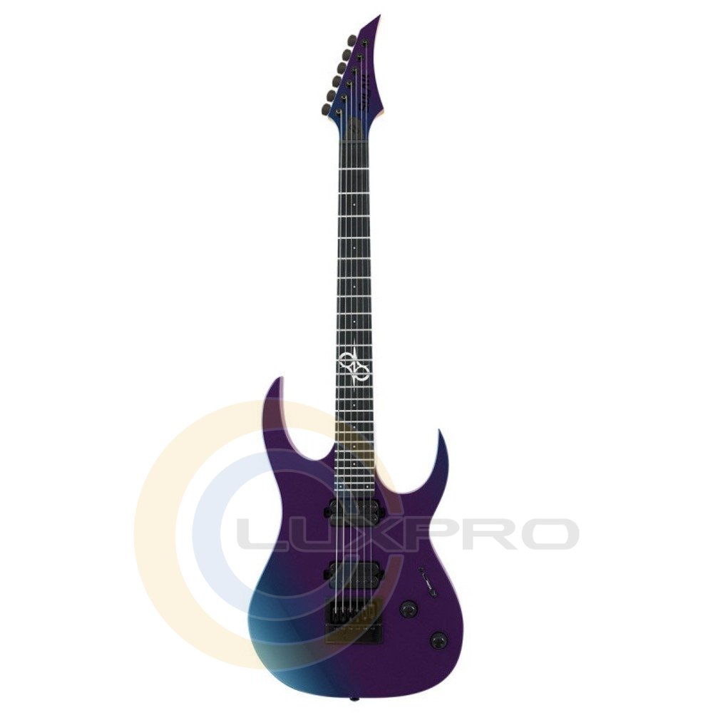 Дополнительные особенности включают колки Solar 18:1 с замком, порожек PPS, 5-позиционный переключатель звукоснимателей, регуляторы громкости и тембра, а также реверсивный хэдсток, придающий инструменту современный и агрессивный вид.