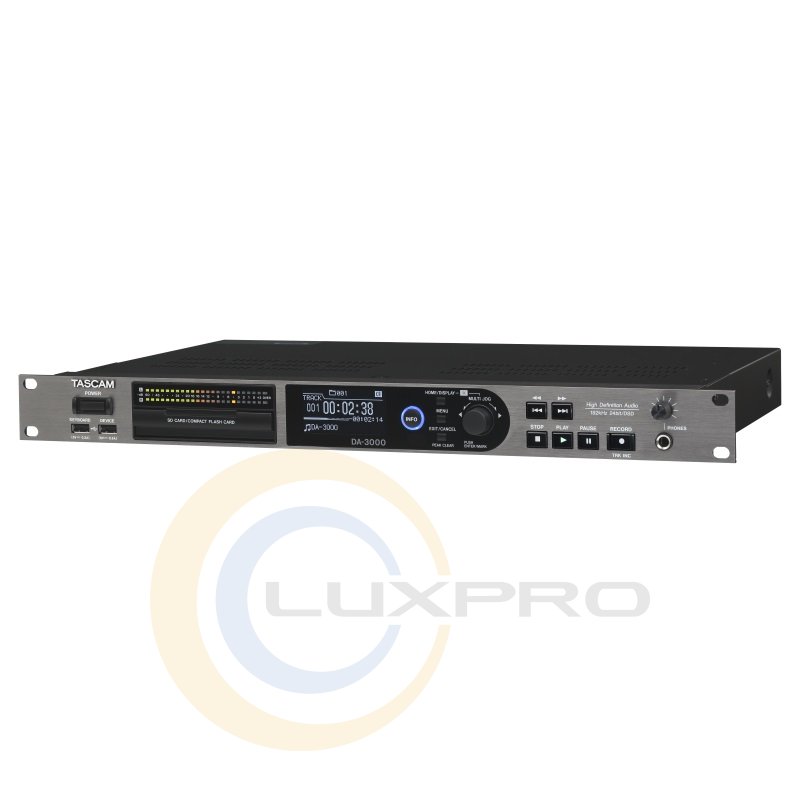 DA-3000 - 2-канальный автономный рэковый DSD/PCM-рекордер. Устройство осуществляет запись на внешние карты SD/SDHC и CF. Подключения к компьютеру не предусмотрено, но есть возможность переноса файлов через USB-накопитель. Устройство отлично подойдет как для небольших домашних студий, так и для крупных профессиональных. Запись/воспроизведение PCM до 192 кГц, DSD - до 5,6 МГц. DA-3000 построен на высококачественных АЦП/ЦАП производства Burr-Brown (PCM4202 и PCM1795 соответственно) и отличается крайне низким уровнем шума благодаря безвентиляторной конструкции. А благодаря наличию генератора с температурной стабилизацией TCXO и двойных моно конвертеров обладает максимально качественным звучанием.
