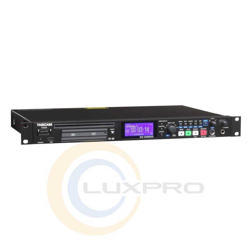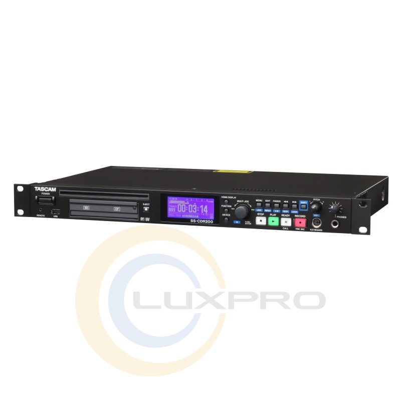 SS-CDR200 - профессиональный стерео рекордер, который будет отличным устройством для студии звукозаписи. Данный рекордер способен вести запись как на карты памяти формата CF и SD, так и на USB-накопители. Запись возможна с параметрами до 48 кГц / 16 бит. Форматы записи WAV и MP3. Также модель оснащена CD-рекордером, что позволяет создавать аудиодиски. SS-CDR200 имеет балансные и небалансные входы и выходы, цифровой коаксиальный вход и выход S / PDIF с конвертером частот дискретизации, параллельный и последовательный RS-232 порт для управления, вход для подключения проводного пульта дистанционного управления, вход компьютерной клавиатуры для быстрого ввода названий треков и управления. И, разумеется, пользователям предоставлены традиционные функции изменения скорости воспроизведения и высоты тона, автопауза и многие другие.