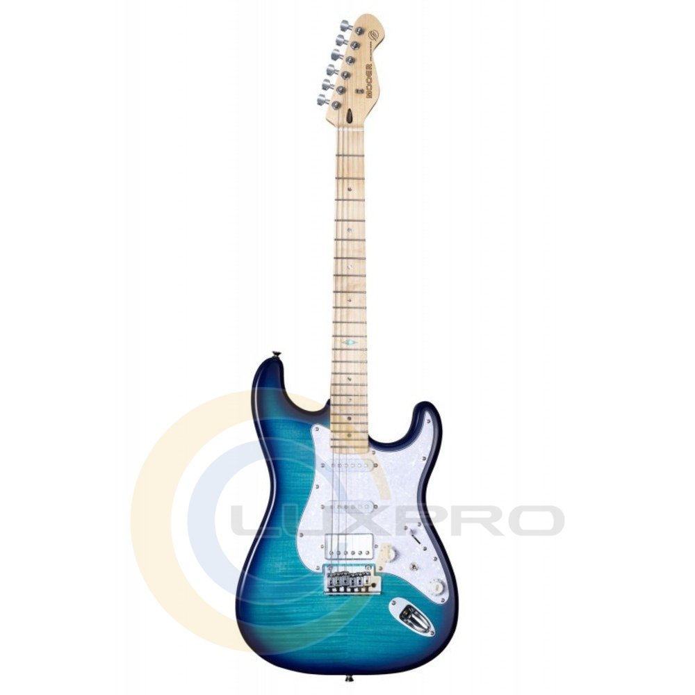Электрогитара MSC30 Pro Lake Blue. Гитара MSC30 Pro имеет прочную конструкцию грифа с болтовой крепью, стальной анкер двойного действия, костяные порожки и хромированные колки MTN-1, что обеспечивает стабильность строя и комфорт в любое время. В основе модели лежат универсальные звукосниматели MOOER MSC, включающие сингл MSC-1N в грифе, сингл MSC-1M в средней части и мощный хамбакер MHB-1B в бридже. Универсальный 5-позиционный селектор звукоснимателей и эксклюзивный переключатель разделения катушек позволяют музыкантам легко переключаться между широкой палитрой тембров, от чистых, идеально пригодных для джаза или блюза до хай-гейновых тембров для более тяжелых жанров.
