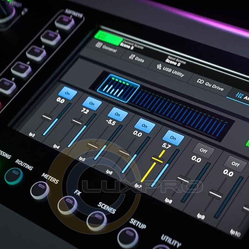 Микшерный пульт Qu-6D. Этот цифровой микшер оснащен 25 моторизованными фейдерами, 24 микрофонными входами, 16 выходами и встроенным Dante-интерфейсом, идеально подходящим для больших систем, живых выступов и фиксированных инсталляций. Усовершенствованное ядро XCVI 96 кГц, современная навигация и поддержка расширенной обработки делают устройство универсальным центром микширования нового поколения.