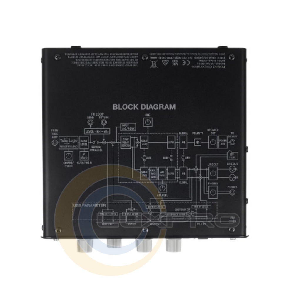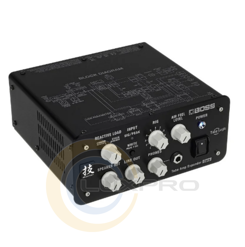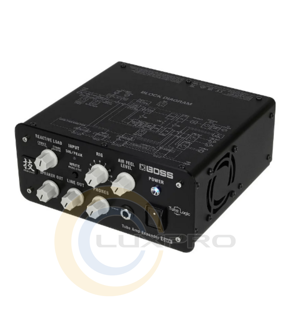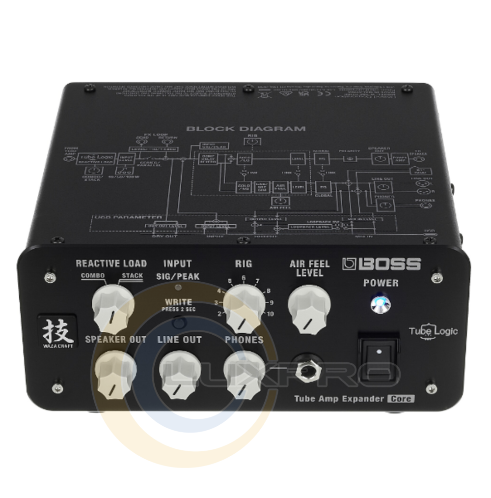 - Управление: Переключатель POWER, ручка SPEAKER OUT, ручка LINE OUT, ручка PHONES, ручка REACTIVE LOAD, ручка RIG, ручка AIR FEEL LEVEL, кнопка WRITE, переключатель INPUT LEVEL, переключатель FX LOOP LEVEL, переключатель GND LIFT;