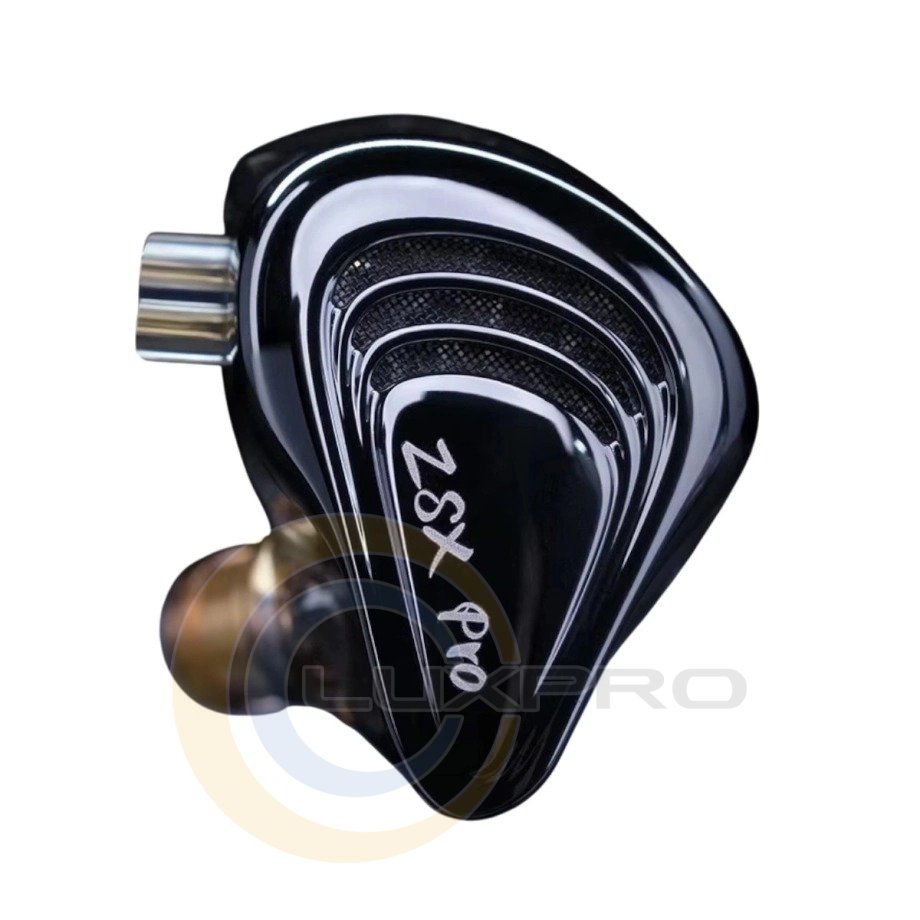Наушники ZSX PRO BLACK NO MIC. Благодаря комбинации одного динамического и пяти сбалансированных арматурных драйверов на каждое ухо, они обеспечивают широкий частотный диапазон и точную передачу звука на всех уровнях — от глубоких басов до прозрачных верхов.
